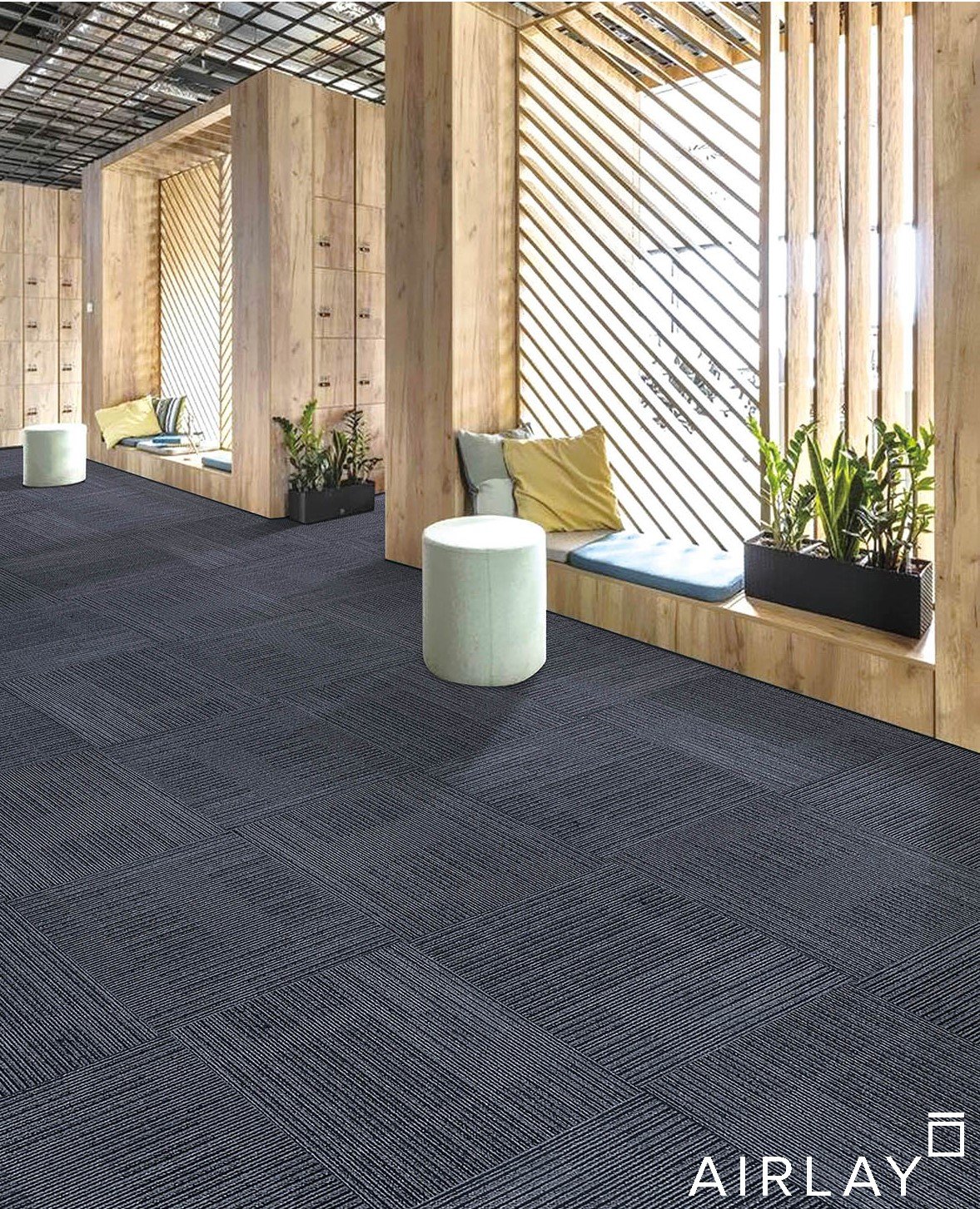 Airlay’s Como Range carpet tiles features solution dyed nylon fibre with a multi loop construction.