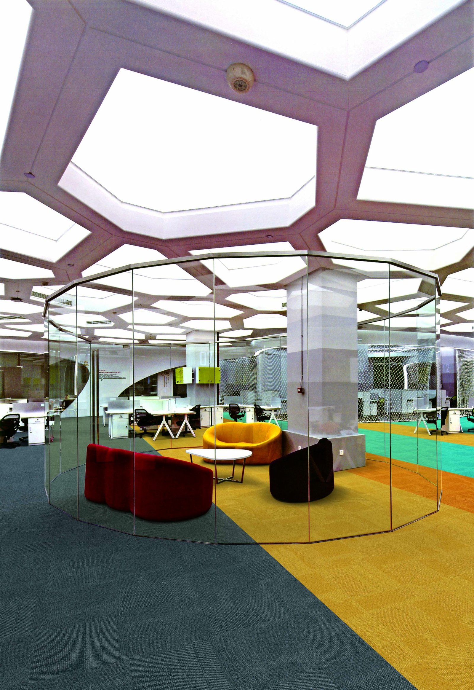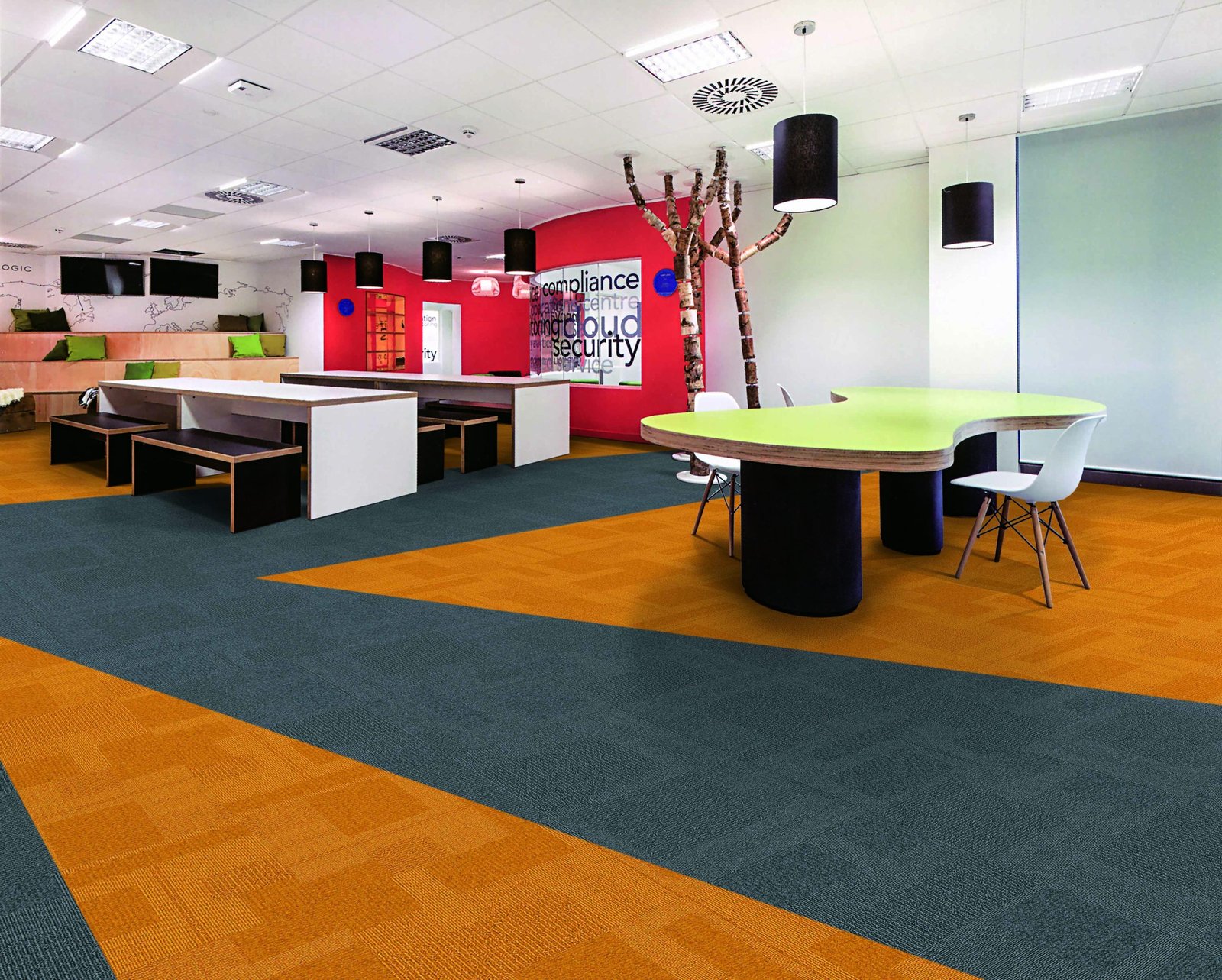 A premium solution dyed nylon carpet tile with a very vibrant colour palette,